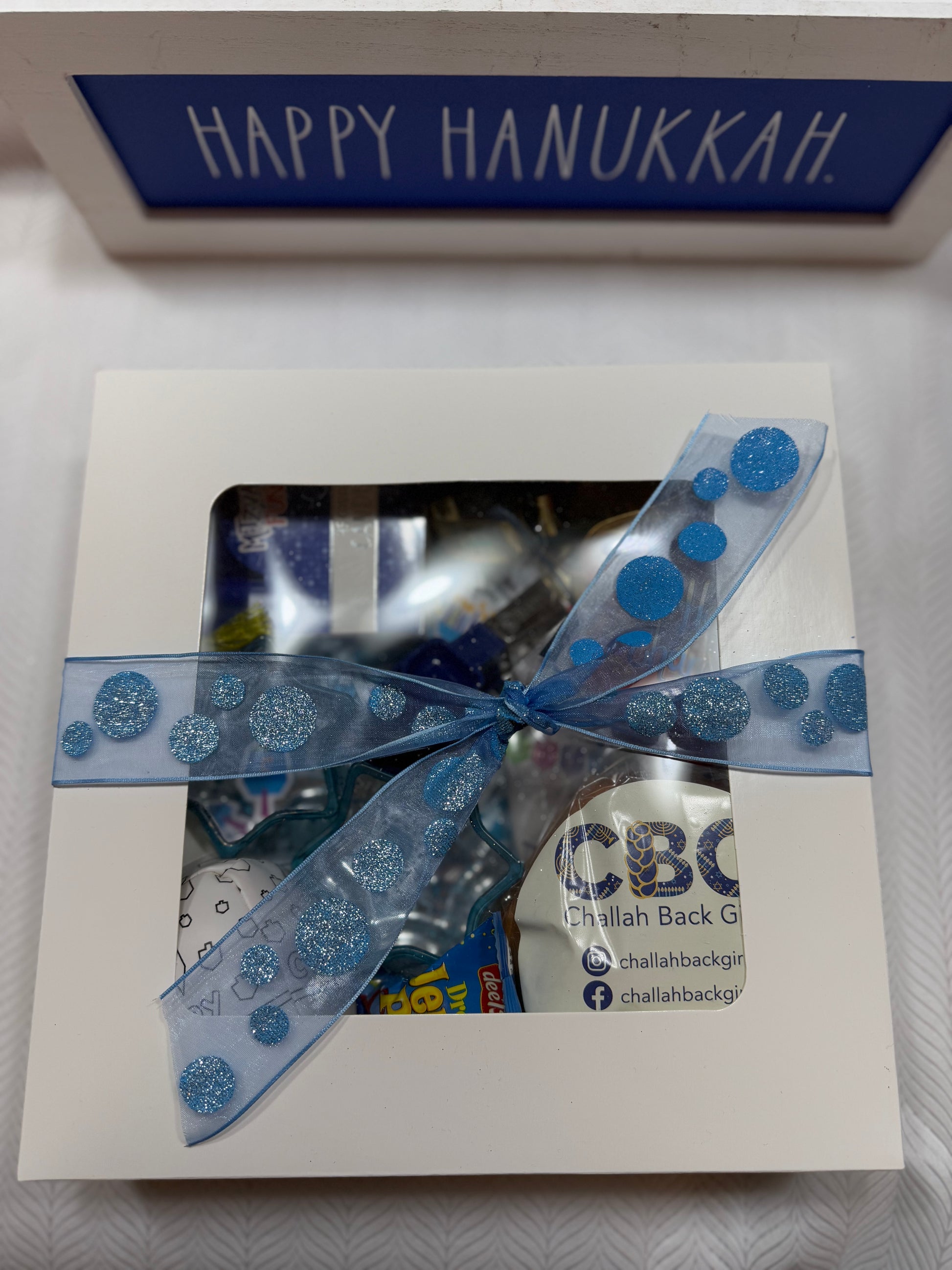 🎁 Sheer Happy Hanukkah bag; includes dreidels and is ready for gifting or surprises.